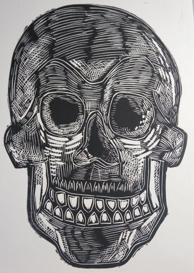 Anatomy of skull linocut print